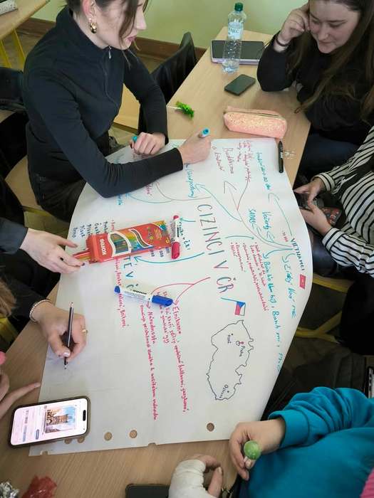 4.AF si v zábavné tématické hodině psychologie "Cizinec v ČR" zamířili na nedaleké Staroměstské náměstí, kde si zahráli hru na výměnou. Studenti dostali jako výbavu hry