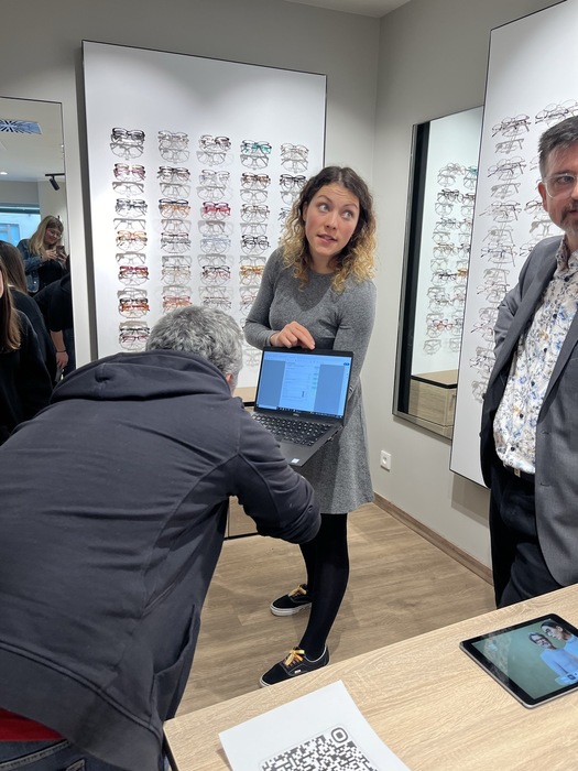 Paní profesorka Ghlimová shrnula průběh takto: "Dozvěděli jsme se různé informace k marketingu firmy, uspořádání optiky, prohlédli jsme si také dílnu a vyšetřovací místnost, kde byl optometristou p. Friedmanem předveden foropter a autorefraktometr. Viděli jsme možnosti vyměřování parametrů zákazníků v prodejní části oční optiky. Strávili jsme tam skoro celé dopoledne a stále bylo o čem mluvit. Děkujeme tímto zaměstnancům firmy, že se nám tak podrobně věnovali."