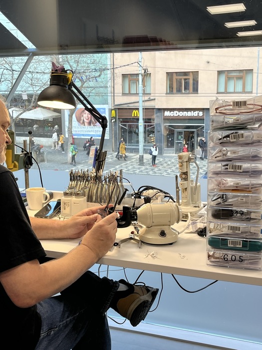 Paní profesorka Ghlimová shrnula průběh takto: "Dozvěděli jsme se různé informace k marketingu firmy, uspořádání optiky, prohlédli jsme si také dílnu a vyšetřovací místnost, kde byl optometristou p. Friedmanem předveden foropter a autorefraktometr. Viděli jsme možnosti vyměřování parametrů zákazníků v prodejní části oční optiky. Strávili jsme tam skoro celé dopoledne a stále bylo o čem mluvit. Děkujeme tímto zaměstnancům firmy, že se nám tak podrobně věnovali."