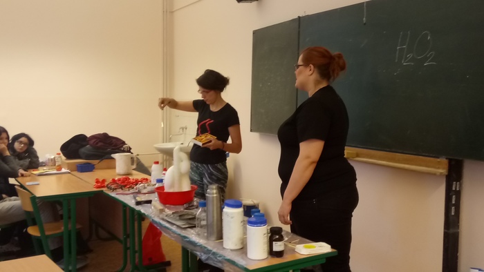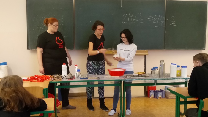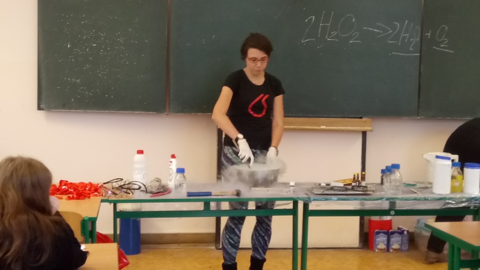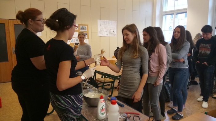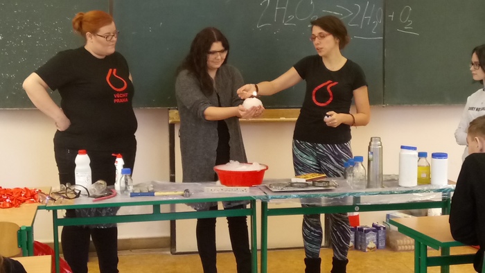 V úterý 19. 12. 2017 proběhla na naší škole již tradičně Hodina moderní chemie. Tento projekt VŠCHT popularizuje chemii a moderní chemické obory, a tím se snaží přiblížit chemii studentům středních škol. Tentokrát přijeli lektoři VŠCHT s modulem Úvod do chemie. Programu se zúčastnili studenti 1. ročníku. Studenti se dozvěděli, jak se vyrábí náplň do hasicího přístroje, co všechno je možné dělat s kapalným dusíkem či jak si vyrobit zmrzlinu. Ze stran studentů se tato interaktivní hodina setkala s velkým zaujetím a snad je přesvědčila, že chemie může být i zábavná a zajímavá.