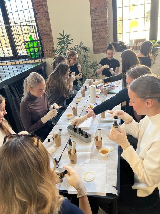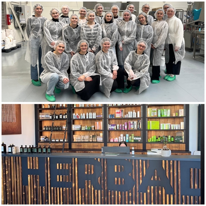 3. března do této firmy zamířily i studentky 2. ročníku spolu se svou odbornou vyučující Bc. Eliškou Němcovou, DiS. Po představení firmy a jejích produktů, jejichž základem jsou vždy léčivé byliny, si studentky namíchaly svou vlastní zubní pastu a na vlastní zuby/kůži si vyzkoušely některé výrobky Herbadentu ze zubního i jiných oddělení - kartáčky, ústní vody, víno nebo výrobky na imunitu a péče o tělo. Poté si prohlédly i sklad a seznámily se s parametry a podmínkami skladování produktů.