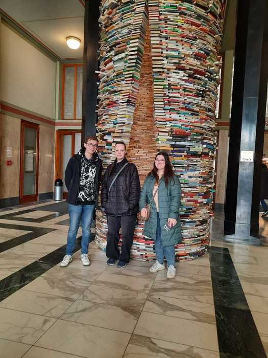 Ve středu 6. března se malá skupinka studentů 1.AO vydala na vlastivědnou vycházku po Starém Městě s názvem „Legendy Starého Města“. V rámci této vycházky se studenti, stejně jako jiní zahraniční turisté, zastavili v budově Ústřední knihovny na Mariánském náměstí, aby si prohlédli tamní expozici „Sloup vědění“ neboli Idiom. Ten je postavený z 8000 knih poskytnutými knihovnou a je jak dole, tak nahoře zakončen dvěma zrcadly. Celý sloup tak symbolizuje nekonečnost vědění.