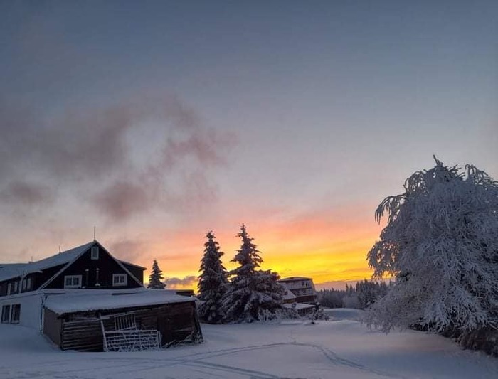 , krásně upravená běžecká stopa Krkonošské magistrály, která vede přímo před chatou a neopakovatelné výhledy na Studniční horu, Obří důl a Sněžku. To vše je korunováno celým