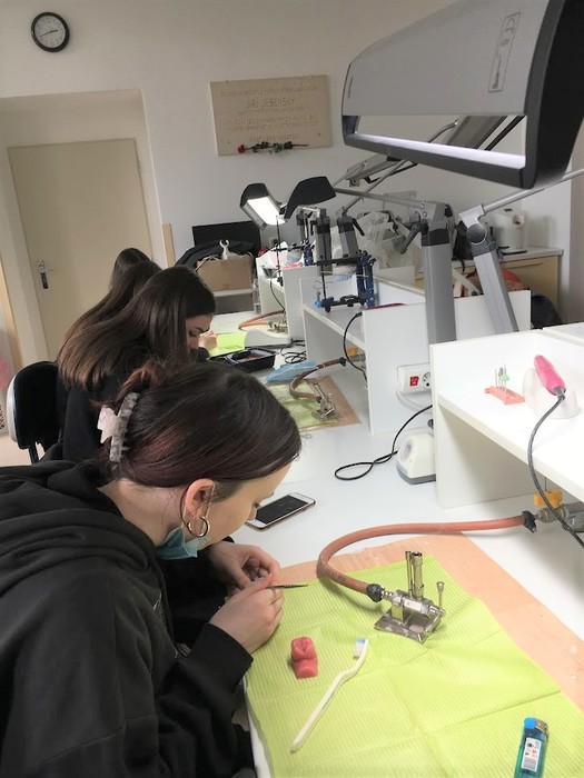 Ve výukové laboratoři je umístěna i pamětní deska Jiřího Jesenského, vedoucího protetické laboratoře pražské stomatologické kliniky. Pojďme si připomenout tohoto lékaře, do jehož života i života celé jeho rodiny tragicky zasáhla druhá světová válka. Bratři Jan (zubní lékař, jeho pamětní deska je umístěna v knihovně kliniky) a Jiří Jesenský patří mezi známé osobnosti dějin českého zubního lékařství a zároveň i byli synovci profesora Jana Jesenského, profesora stomatologie na Karlově univerzitě a zakladatele již zmiňované Pražské stomatologické kliniky. Jiří byl i mistrem Československa v šermu fleretem a startoval v roce 1936 na olympijských hrách. Oba bratři již od začátku 2. světové války spolupracovali s ilegálními protinacistickými organizacemi a byli aktivními spolupracovníky parašutistů, kterým pomáhali během přípravy atentátu na říšského protektora Reynharda Heydricha. Po atentátu byli jedni z těch tichých hrdinů, kteří do úkrytu parašutistů v kryptě kostela v Resslově ulici dodávali potraviny a věci denní spotřeby. Po odhalení úkrytu byli oba bratři i s manželkami zatčeni, vyslýcháni a popraveni Němci 24. 10. 1942 v Mauthausenu. Čest jejich památce.