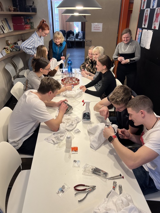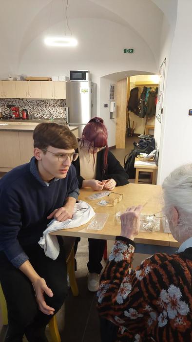 Dne 1. března a 22. března žáci 4. třídy oboru Oční optik v KLUBECH SENIORŮ na Praze 1 (v Tomášské a v Havelské ulici) pod vedením našich pedagogů Mgr. Daniely Říhové a Pavly Ghlimové upravovali, čistili, přizpůsobovali a prováděli drobné opravy brýlí našim seniorům. Naše škola tak navázala na dlouhodobou spolupráci s Terezou Ivou Noskovou, koordinátorkou volnočasových aktivit Střediska sociálních služeb. Sami senioři si nás vyžádali a měli velký zájem o tuto akci