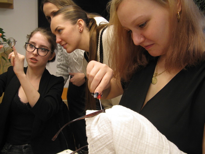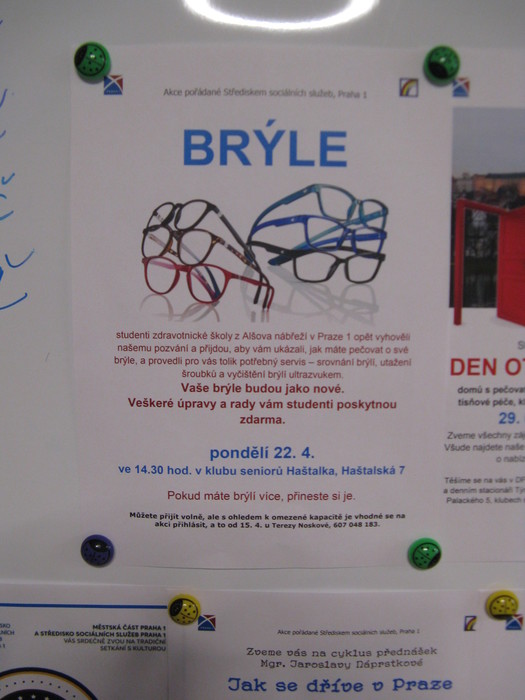 "25. března jsme vyrazili se třídou 4. AO do klubu seniorů seniorského klubu v Tomášské ulici seřizovat a opravovat brýle členům klubu. Chodíme tam každoročně vždy na jaře a jako vždy byla akce nejstarší generací velmi vítaná a dlouho očekávaná. Senioři se dozvěděli mnoho zajímavého o brýlích a jejich nákupu v oční optice a našim studentům se svěřili se svými zkušenostmi na tomto poli. Senioři si také přinesli své brýle, které jsme zkontrolovali, vyčistili v ultrazvukové čističce, rozbité brýle jsme pečlivě opravili a seřídili. Nebyla ani nouze o osobní příběhy členů klubu, kdy se naši studenti ukázali jako výborní a empatičtí posluchači.