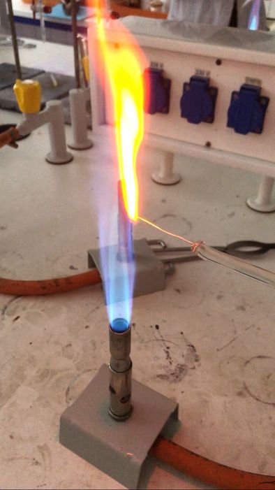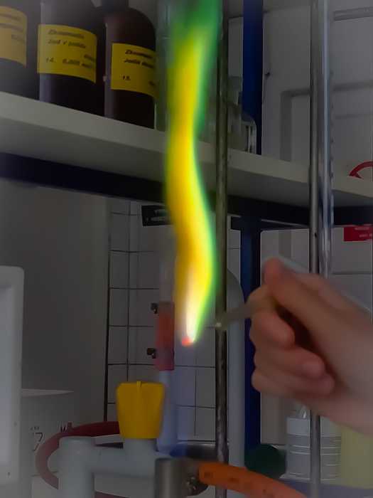 Doma to nezkoušejte! Zkouška probíhá tak, že se drátek (nejlépe platinový nebo z inertního - nereaktivního materiálu), pečlivě umytý v kyselině a vyžíhaný nad plamenem, ponoří do roztoku zkoumané látky. Následně se vloží do plamene a sleduje se změna zabarvení plamene. Podle barvy plamene lze určit, jaký kovový prvek sloučenina obsahuje.