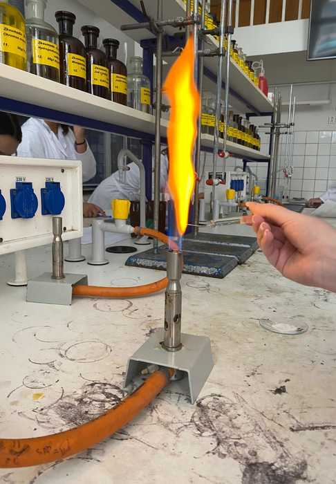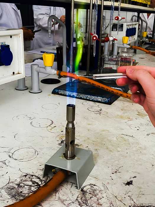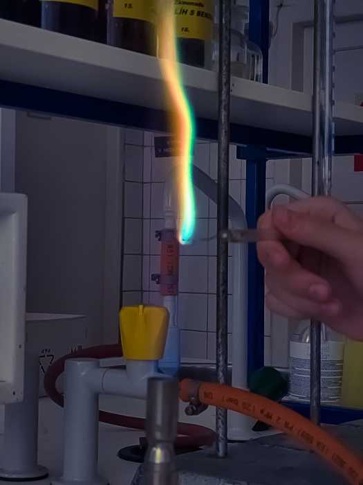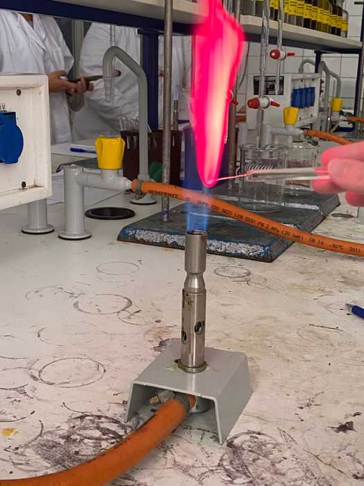 Zkouška ohněm? U nás není problém. Studentky 2. ročníku oboru laboratorní asistent si na hodině analytické chemie připravily ukázku plamenových zkoušek sloučenin lithia, vápníku, mědi, barya a stroncia.