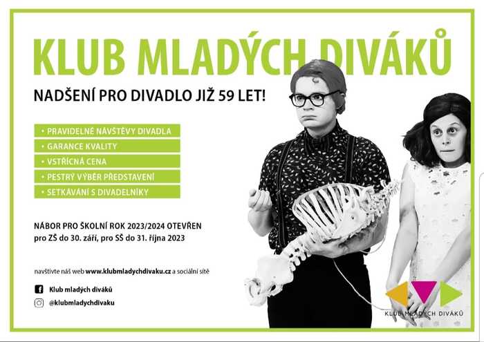 Zdravím vás v tomto školním roce a ráda bych vás informovala, že je možné se přihlásit do Klubu Mladých Diváků na novou divadelní sezonu.