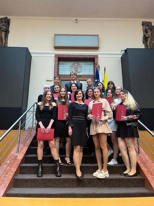Školní rok se blíží ke svému konci a jeho součástí je i slavnostní předávání maturitních vysvědčení na Magistrátu hlavního města Prahy, které proběhlo v úterý 6. 6. Během následujících dní Vám přineseme i video z akce. Všem maturantům přejeme mnoho úspěchů při dalším studiu či v profesním životě a všem třídním učitelům i učitelům, kteří své žáky provedli čtyřmi lety studia, děkujeme.