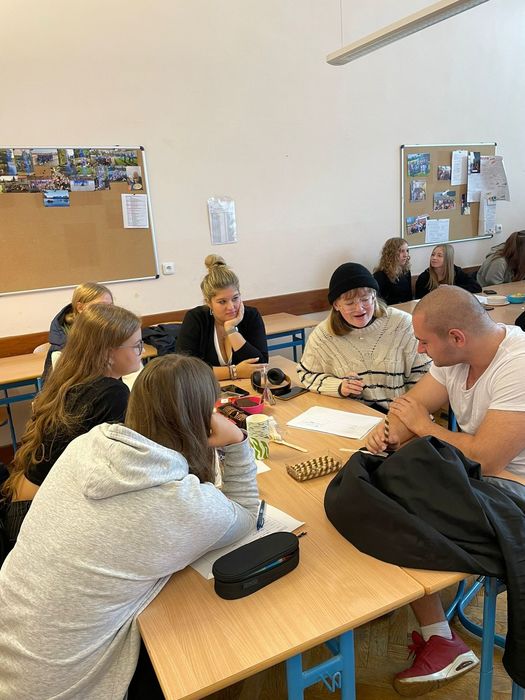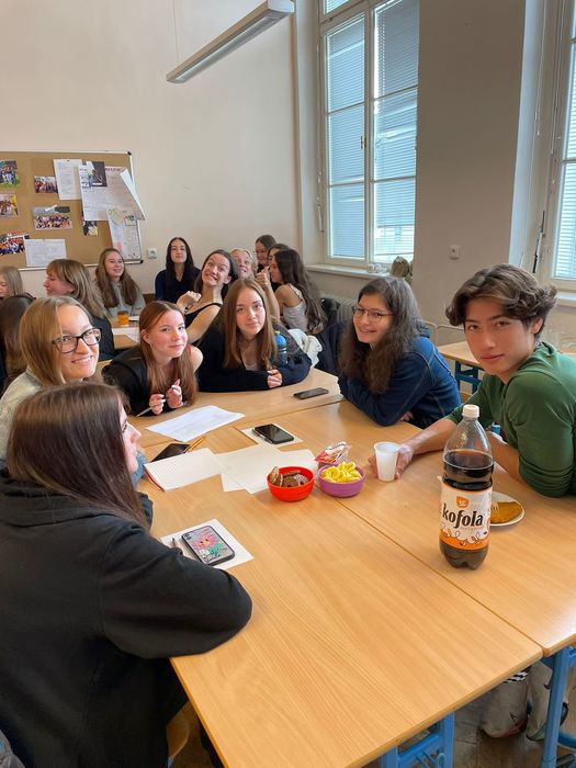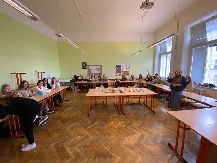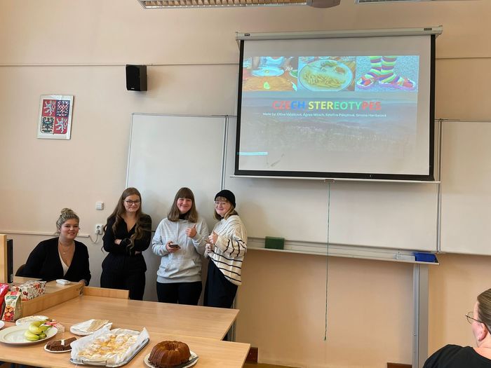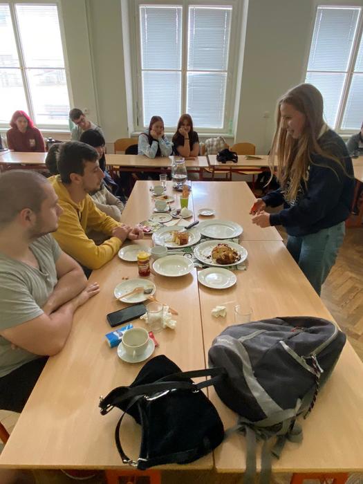 Vše zakončila část dne, kterou si všichni možná nejvíce užili – vzájemné zkoumání / porovnávání našich jazyků a kultur. A třešničkou na pomyslném dortu byly i výtečné dobroty, které naše studentky připravily pro hosty.