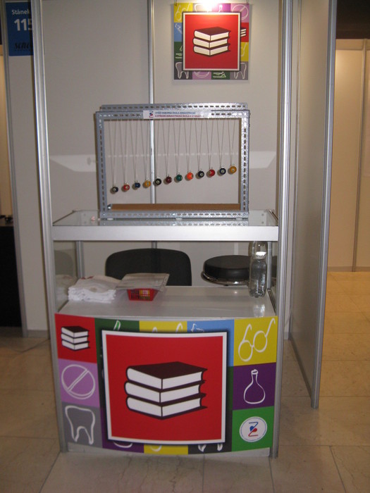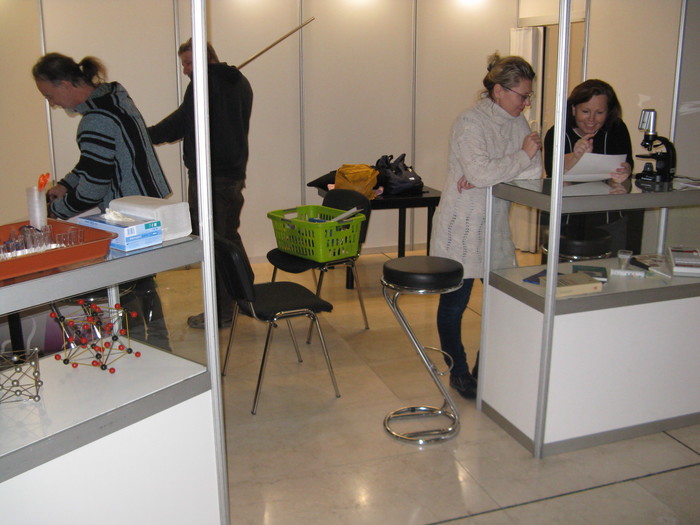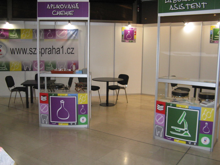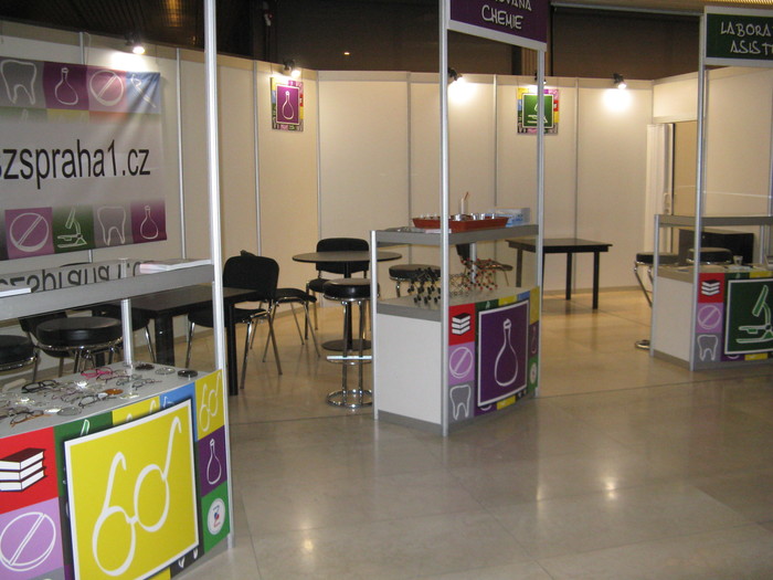 Ještě před začátkem akce se vše muselo náležitě připravit - paní Pavla Ghlimová spolu se svými kolegy, zastupujícími jednotlivé obory, měla na starosti instalaci stánku a jeho vybavení tak, aby měl každý obor místo na svou prezentaci.