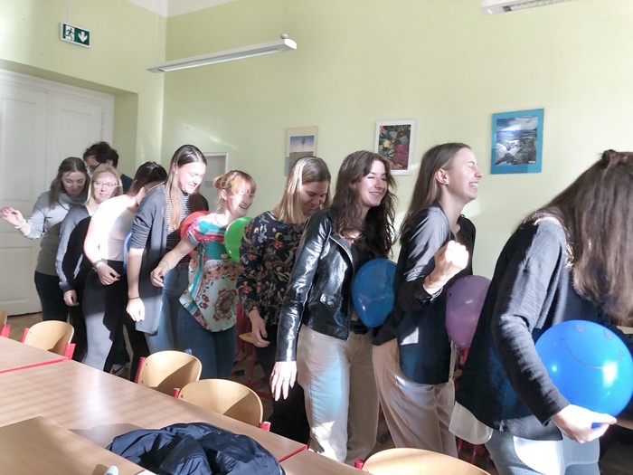 Snažíme se, aby výuka naše studenty bavila a mohli jsme jim předat ze svých zkušeností co nejvíce. Takto se například studenti oboru Diplomovaná dentální hygienistka v hodinách pedagogiky a edukace "učí", jak by měla vypadat týmová spolupráce.