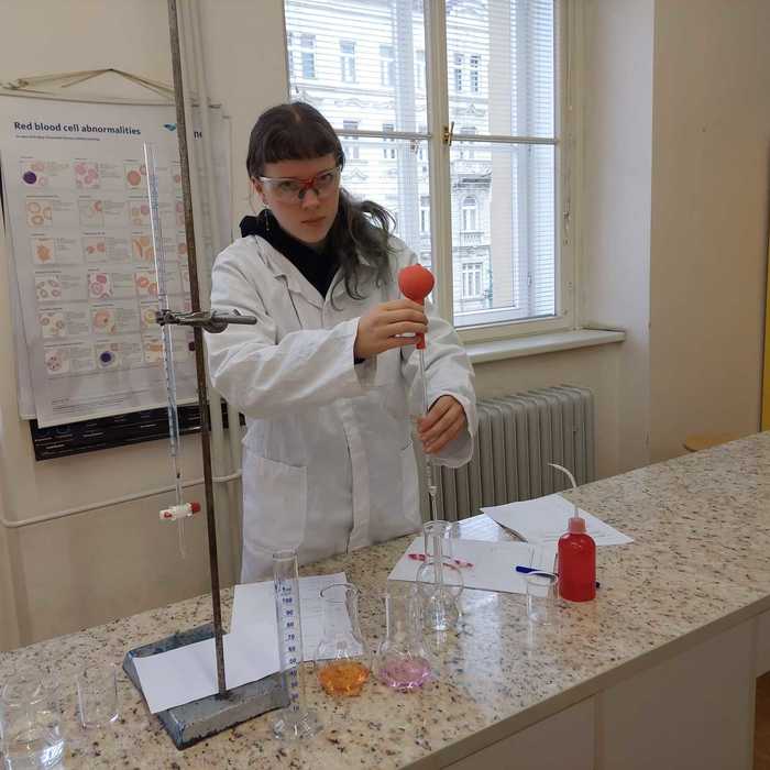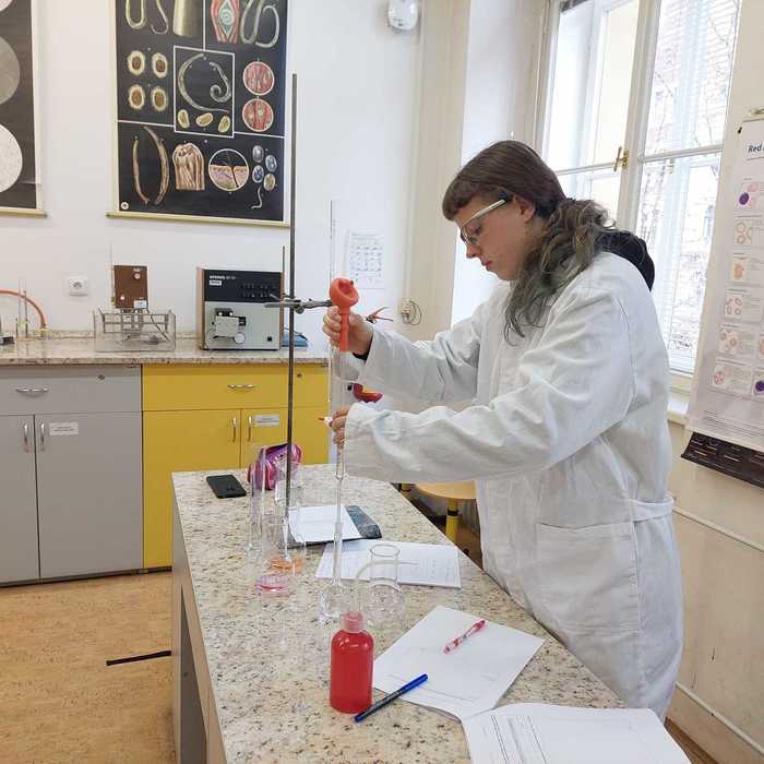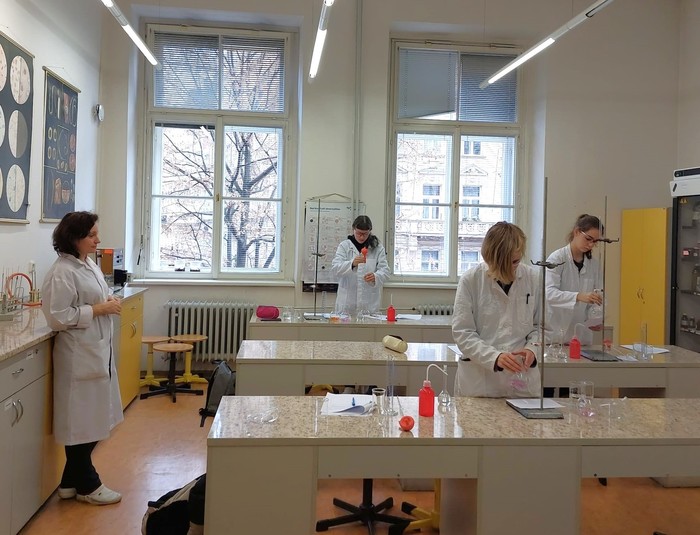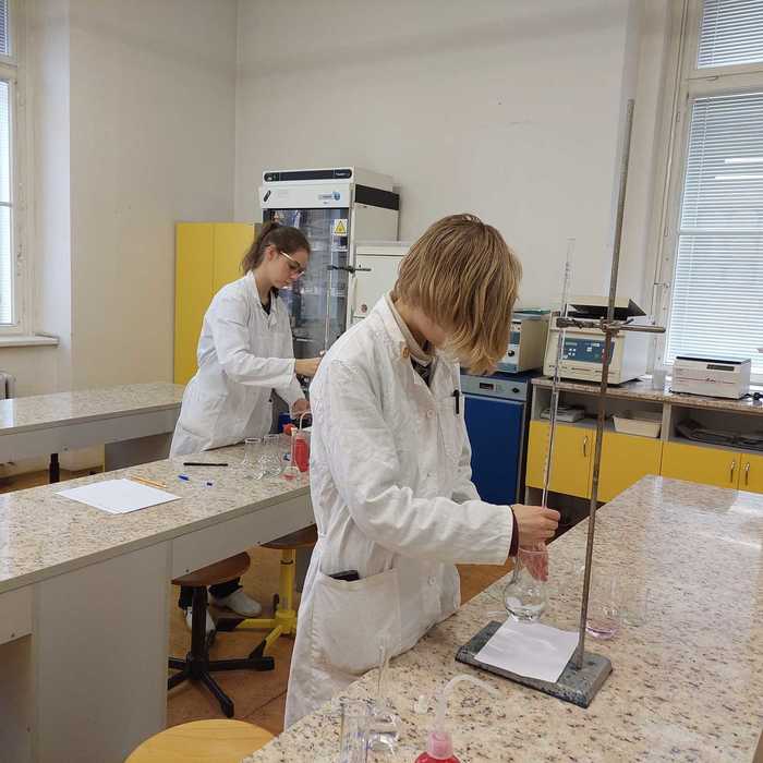 olympiády kategorie B, která se skládá ze tří částí - teoretické (tu si soutěžící vypracovává sám doma) a ve škole pak i části praktické (v laboratoři plní zadané úkoly) a jako poslední následuje písemný test. Letos se školního kola zaměřeného na anorganickou a organickou chemii a soutěžící zde musí prokázat široké spektrum znalostí přesahujích rámec středoškolského učiva. Školního kola se zúčastnily