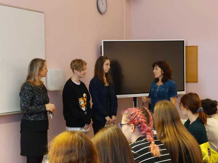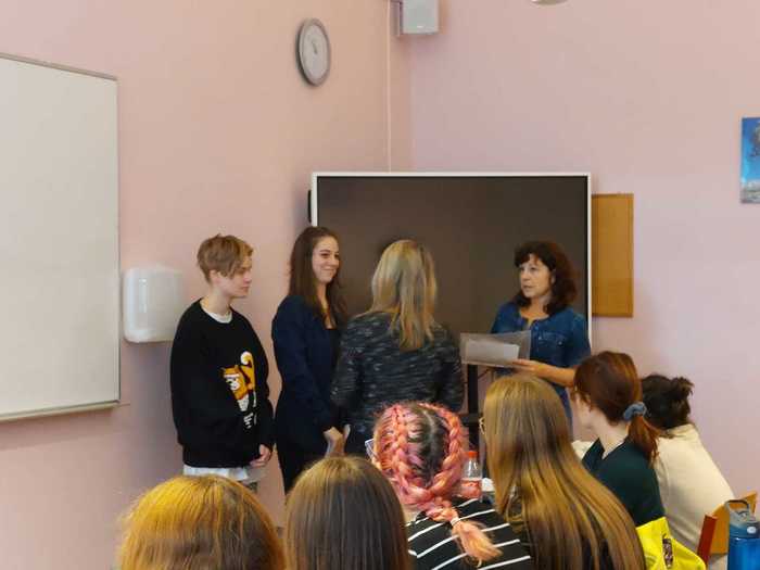 původně 3 studentky - Simona Čermáková, Adéla Dondová a Anna Burešová - všechny ze 3. AF. K závěřečnému písemnému testu nastoupila jen Adéla a Anna, Simonu bohužel vyřadilo zdraví, které je samozřejmě to nejdůležitější.