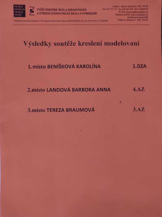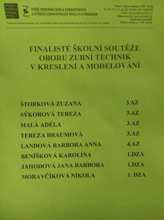 získala Karolína Beníšková, studentka 1. DZA (VOŠ), která naši školu na soutěži úspěšně reprezentovala i v minulých letech, kdy byla žákyní naší střední školy oboru asistent zubního technika. Druhé místo