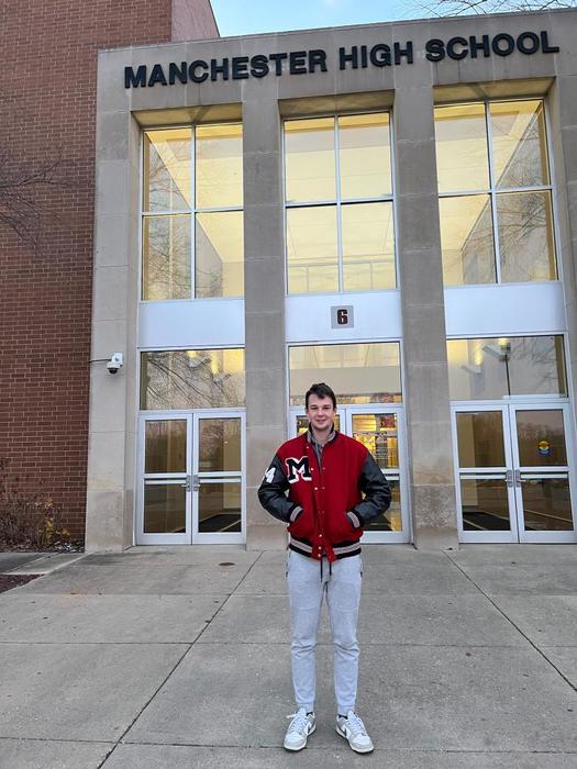 Manchester Junior-Senior High School, kde chodí například na předměty: strojírenský design, geometrie, enviromentální vědy nebo také historie USA. Aktivně se do školního života zapojil i tím, že je členem školního týmu amerického fotbalu. Škola i školní sporty ho moc baví a zkušenosti, které během svého pobytu získá, mu již nikdo nevezme a určitě je využije i v celém svém životě.