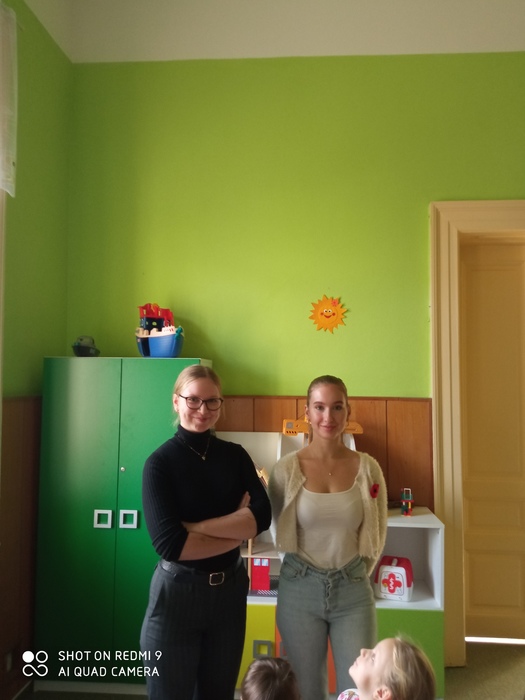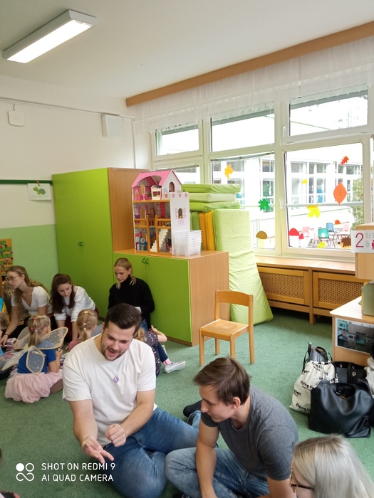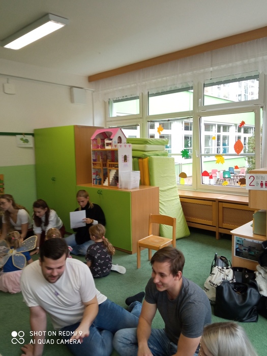 diplomovaná dentální hygienistka učí pomocí her a pohádek děti v mateřských školách Trojická a Plamínková, jak si správně vyčistit