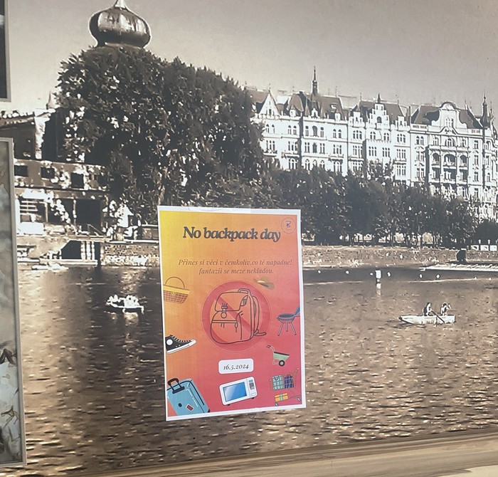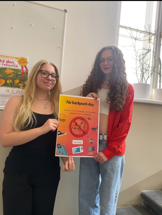 , která proběhne pod taktovkou školního parlamentu již zítra tj. ve čtvrtek 16. 5. 2024. Své školní pomůcky či pracovní věci si tedy přineste v něčem jiném, než v obvyklém školním batohu. Naše žákyně Štěpánka Hálková (1. AO) a Alžběta Krátká (1. AZ) informační letáčky již včera vyvěsily a my se už teď těšíme na Vaše nápady!