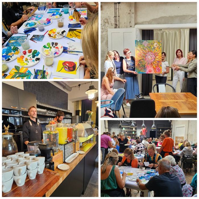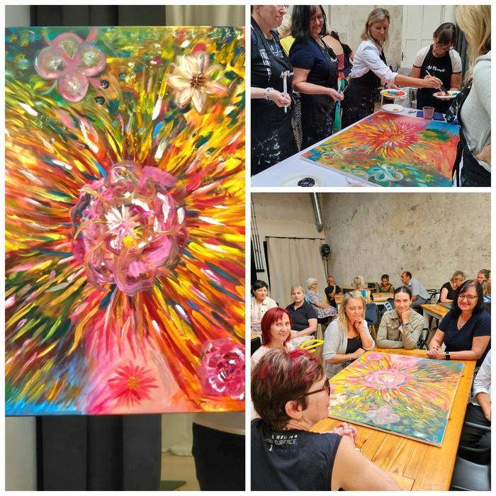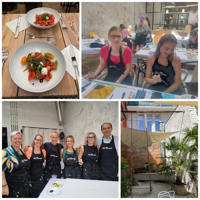 Na rozjezd nás čekal týmový ArtPubQuiz - jak název napovídá - zaměřený na zejména na naše vědomosti z oblasti umění, ale jsme zdravotnická škola, takže nechybělo ani pár otázek z oboru zdravotnického. Tempo nezpomalilo a následovalo týmové malování obrazů. Po zaslouženém obědě týmy své výtvory odprezentovaly.